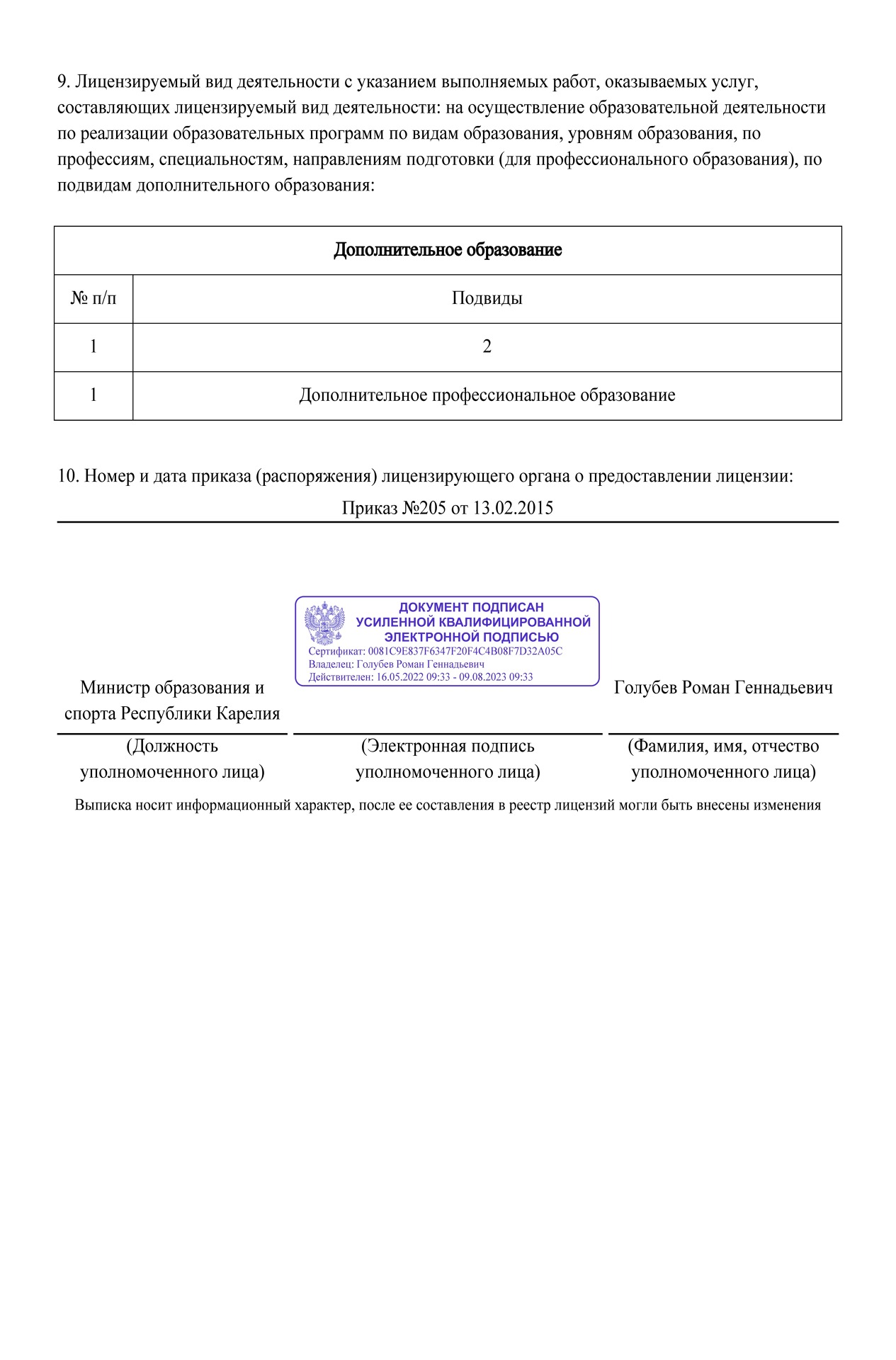 Адрес осуществления образовательной деятельности: 185005, Республика Карелия, г. Петрозаводск, ул. Ригачина дом 37А, офис 303